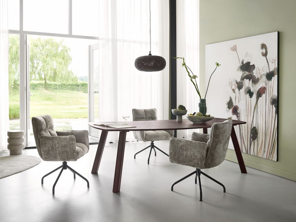 Naast het hoge zitcomfort biedt de Novira beige ook volop gebruiksgemak. Het zwarte metalen onderstel is uitgerust met een 360 graden draaimechanisme inclusief automatische terugkeerfunctie. Hierdoor draai je eenvoudig aan en van tafel, terwijl de stoel daarna vanzelf terugkeert naar zijn originele positie. Dat zorgt voor een strakke, opgeruimde look rondom de eettafel. De armleuningen geven extra ondersteuning en zijn ideaal geplaatst voor een ontspannen zithouding. De lichte, natuurlijke kleur maakt deze armstoel bijzonder veelzijdig en goed te combineren met verschillende materialen, van hout tot staal. Novira is bovendien verkrijgbaar in meerdere kleuren, zodat je een kleur kiest die aansluit bij jouw interieurstijl.