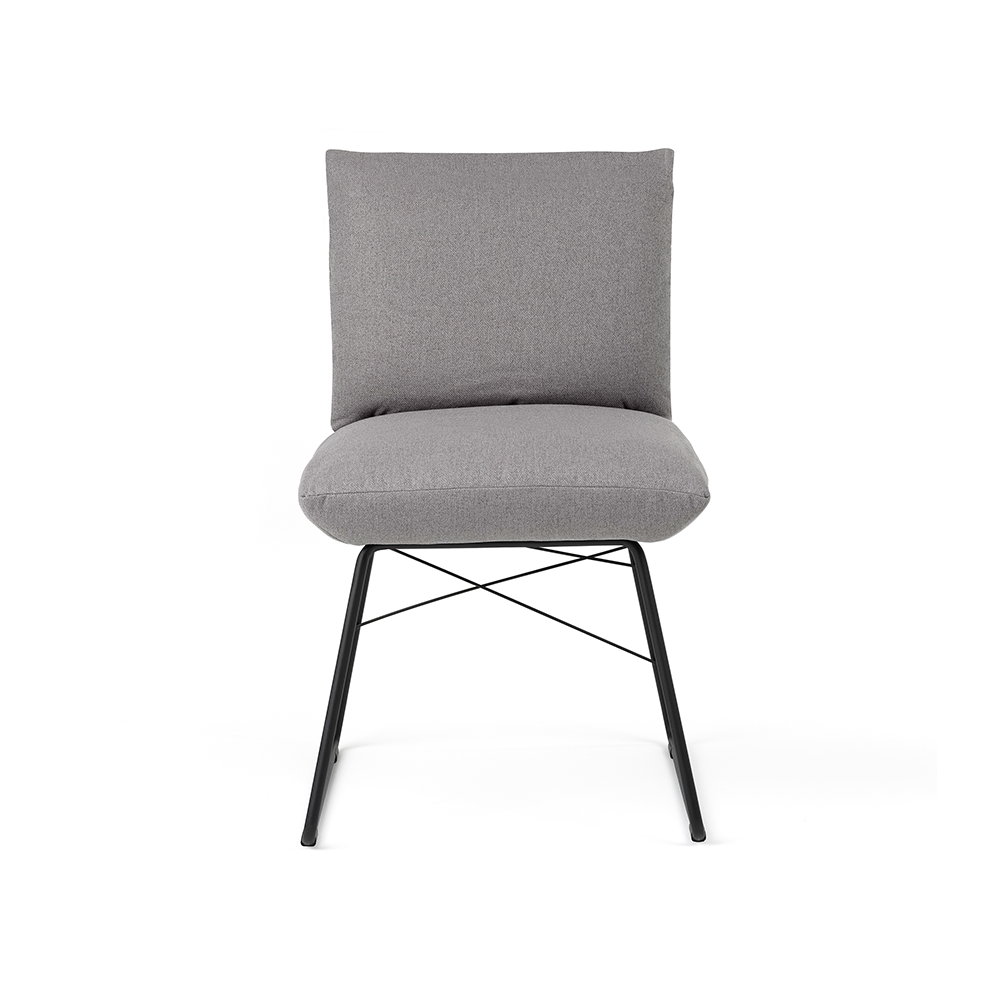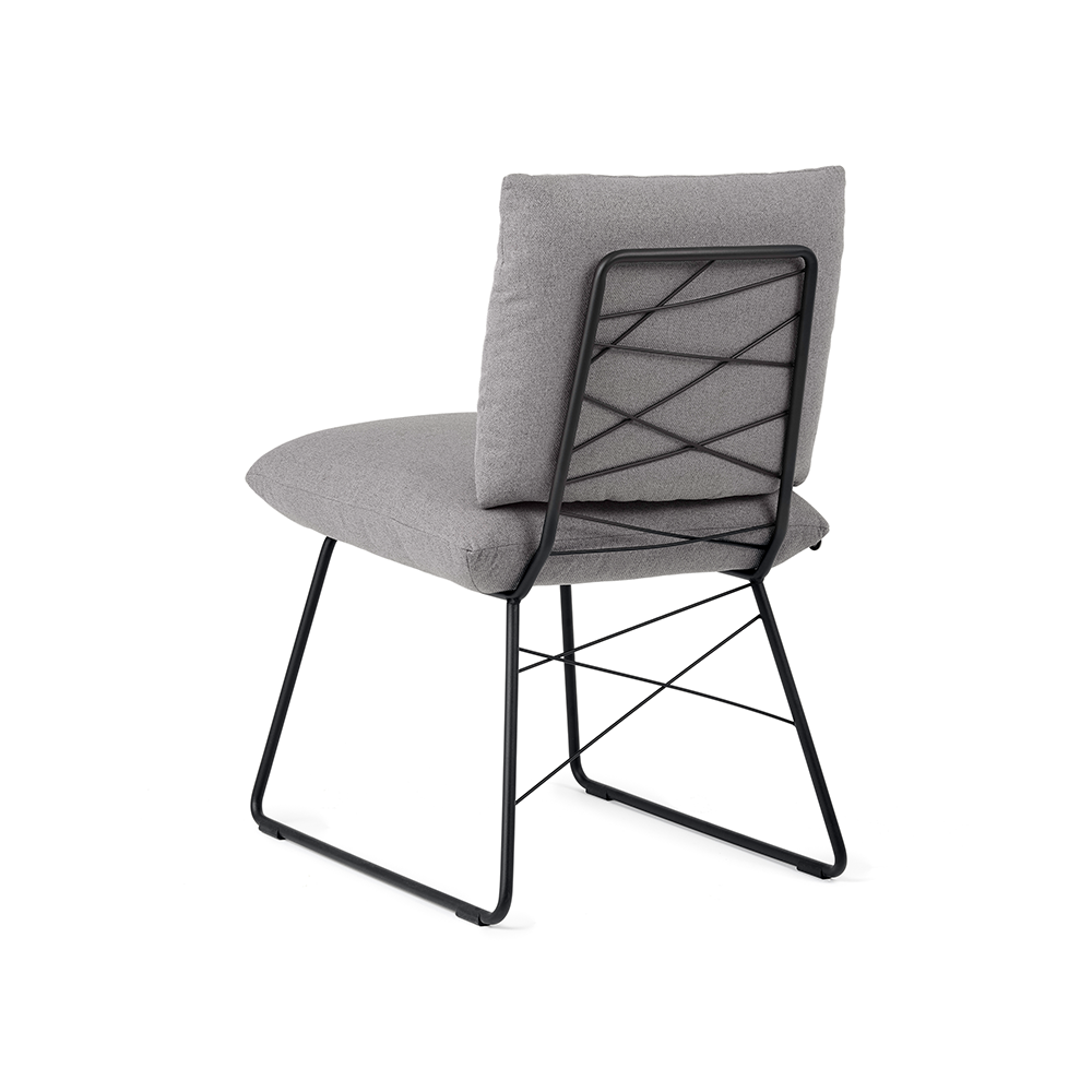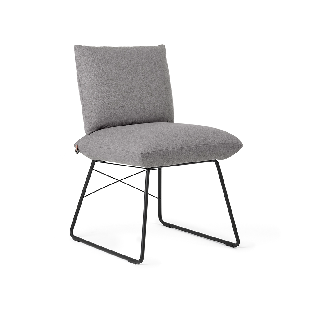 Zoals alle Mobitec-stoelen, is ook eetstoel Cosy zelf te ontwerpen. Je kiest zelf de bekleding van de zitkussens, net als de kleur van de metalen elementen.