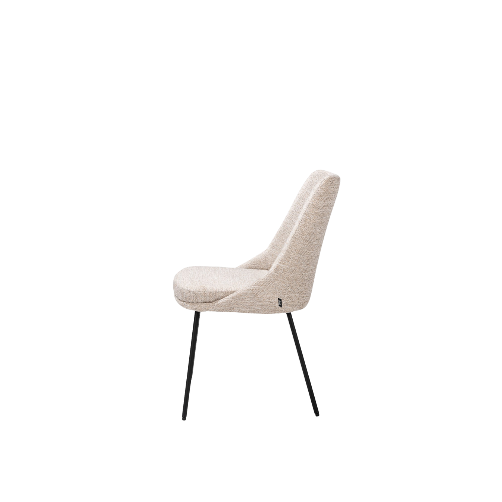 Eetstoel Isaac van Henders & Hazel brengt rust aan tafel met een helder, functioneel ontwerp. De brede rug geeft direct een prettig steunpunt en nodigt uit om langer te tafelen. Dankzij de slijtvaste bekleding in stof Bellini is Isaac gemaakt voor intensief woongebruik. De stof voelt aangenaam aan, blijft mooi in vorm en is praktisch in het dagelijks leven. In de getoonde kleur crème voegt de stoel licht en warmte toe aan je interieur, zonder te overheersen. Liever een andere kleur? Isaac is er ook in groen en koper. Combineer gerust meerdere tinten rond de tafel voor een speels geheel. De subtiele, strakke lijnen maken Isaac makkelijk te plaatsen bij uiteenlopende tafelbladen, van licht eiken tot donker fineer en keramiek. Zo haal je een comfortabele basisstoel in huis die moeiteloos meebeweegt met je stijl.