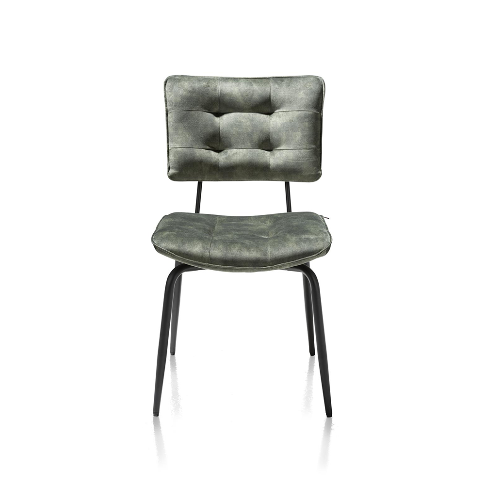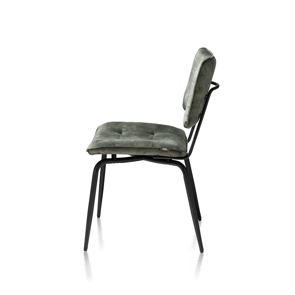 Daarnaast heeft eetstoel Manou olijf een mooie off black metalen onderstel. Ook de gecapitonneerde zitting en rugleuning vallen op en geven de eetstoel net wat meer allure. De stoel heeft ook een frame wat doorloopt over de achterzijde. Hierdoor heb je meteen een praktische greep om de stoel vast te pakken, zonder dat je aan de stof komt.