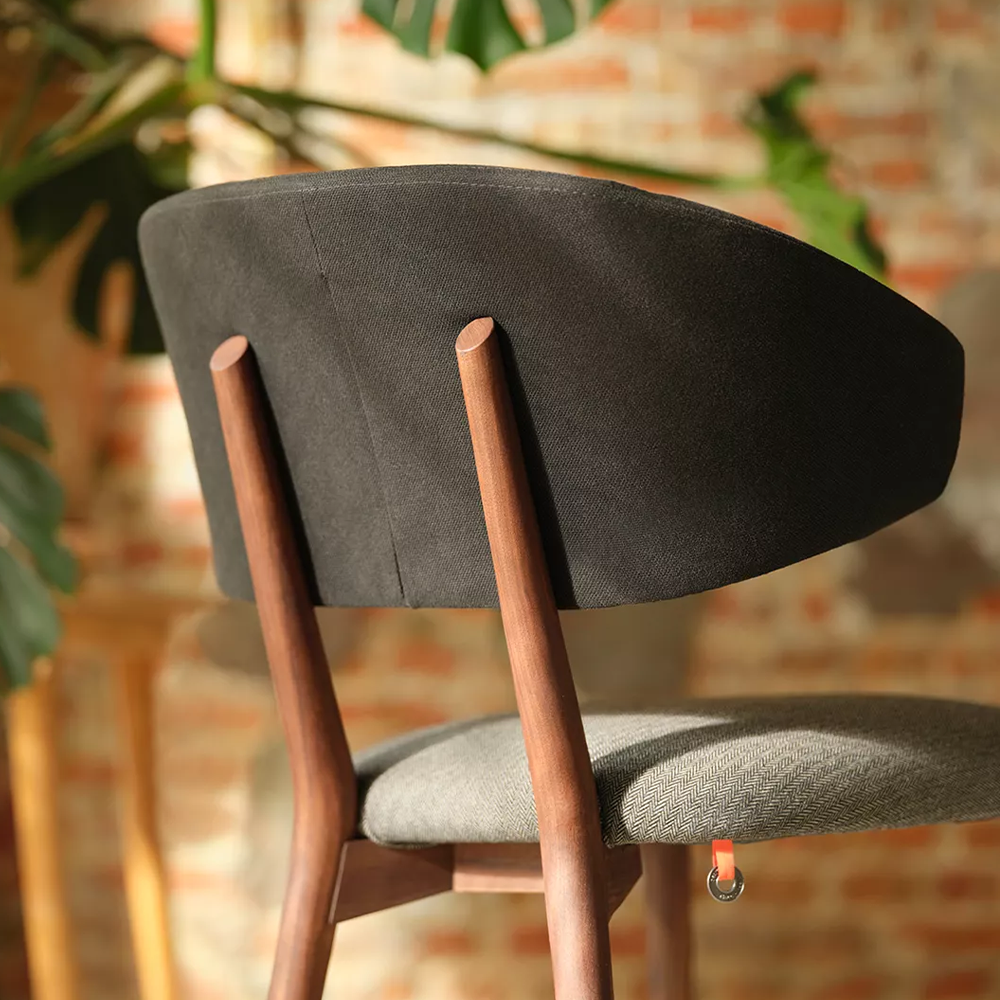 Eetstoel Toro heeft een minimalistisch design is zowel verfijnd als comfortabel. Opvallend is de gebogen rugleuning met dubbele schuimlaag. Deze doet dienst als armsteun en hangt zonder zichtbare schroeven aan de achterkant van het houten onderstel. Bovendien kun je ook de poot zelf samenstellen, kies uit de houtsoorten beuk, eik of notelaar. Daarnaast kun je de poten ook nog eens in verschillende kleuren en afwerkingen kiezen. Voor de bekleding kun je kiezen uit stof, leder of kunstleder.