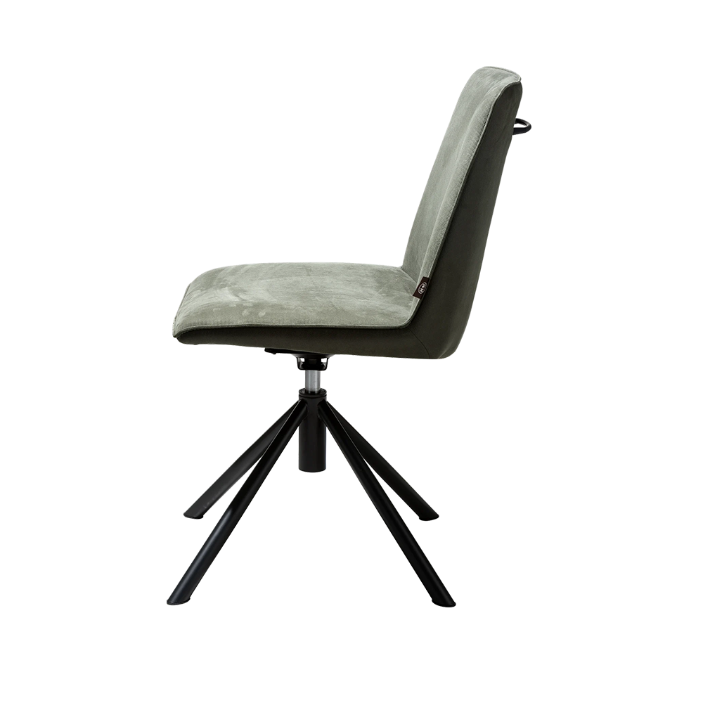 Stoel Brody Groen van Henders & Hazel heeft een mooi eigentijds design. De stoel met zwart metalen armleuningen staat op een strak zwart onderstel. Opvallend aan deze eetkamerstoel is dat er met verschillende stoffen is gewerkt. De voorkant van de stoel is bekleed met Savannah, de achterzijde met Kibo. Beide in de kleur groen. Op de rugleuning is een praktische handgreep aangebracht. Een aanwinst in het interieur.