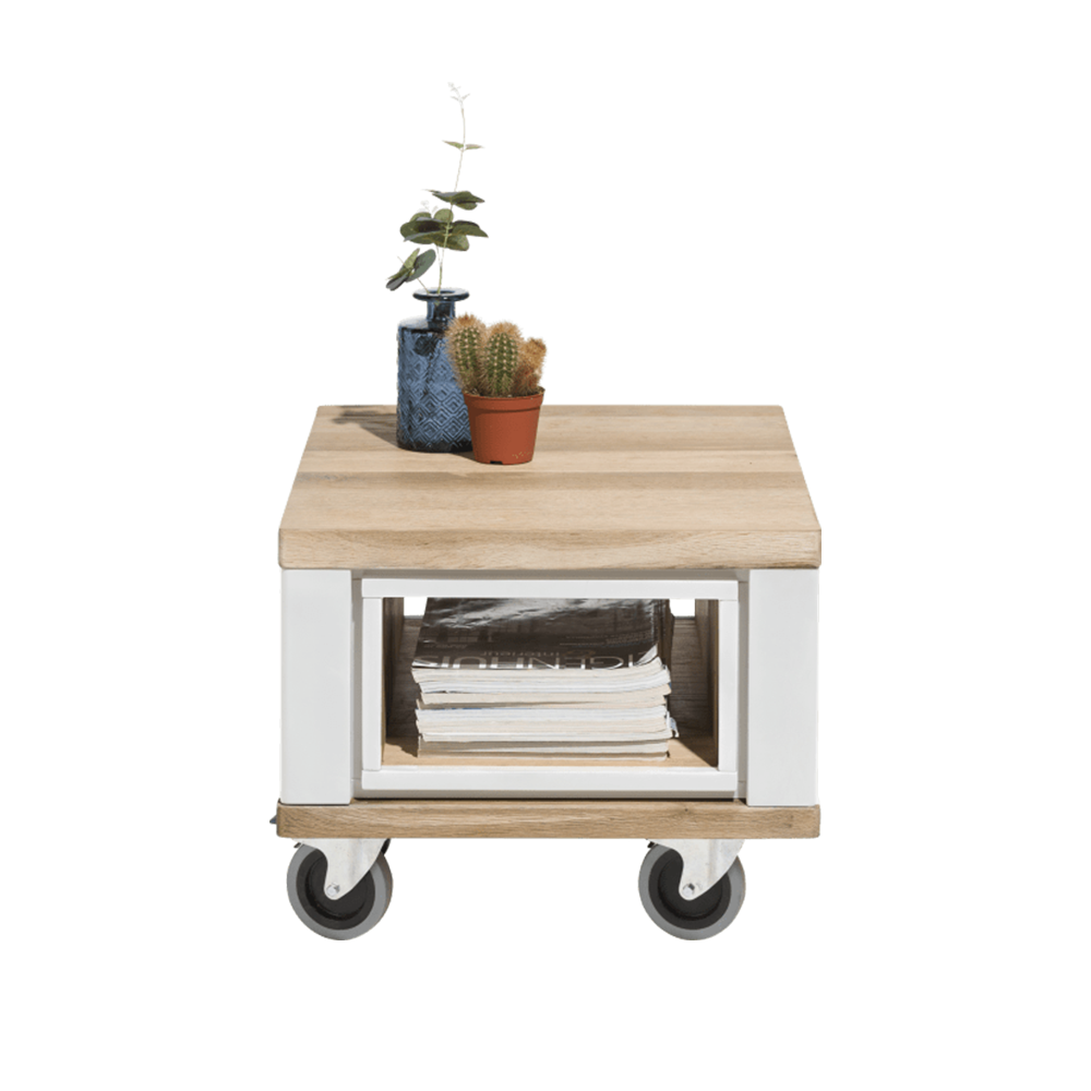 Bijzettafel Jardin heeft een mooie landelijke uitstraling. Deze bijzettafel komt uit de collectie van Henders & Hazel en combineert strakke lijnen met een warme uitstraling. Bovendien heeft de bijzettafel een opvallende combinatie van materialen en kleuren. Zo is het eikenfineer afgewerkt in de kleur Railway Brown en heeft het MDF een witte kleur. Maar Jardin is ook leverbaar in de kleur grijs. Hierdoor is het tafeltje makkelijk te plaatsen in veel verschillende soorten interieurs. Daarnaast kan de bijzettafel met wieltjes worden geleverd. Dit is handig voor het verplaatsen van het tafeltje.