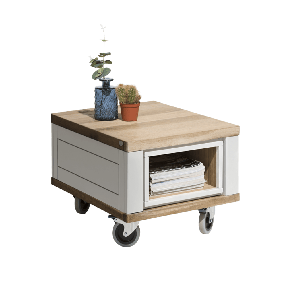 Bijzettafel Jardin is onderdeel van het woonprogramma Jardin / Jardino. Dit woonprogramma staat voor tijdloze romantiek. Doordat alle meubels uit dit woonprogramma zijn uitgevoerd in eikenfineer met naar keuze witte of grijze MDF-fronten, passen ze prima in een landelijke woonstijl. Daarnaast hebben de meubels ook een moderne uitstraling. Bovendien hebben alle laden, deuren en ledverlichting van Jardin een optie voor een soft-closing systeem.