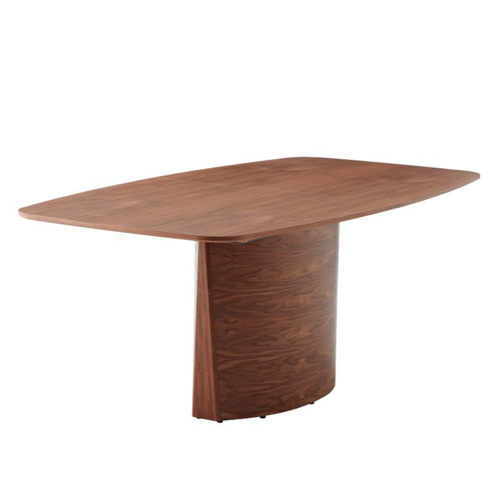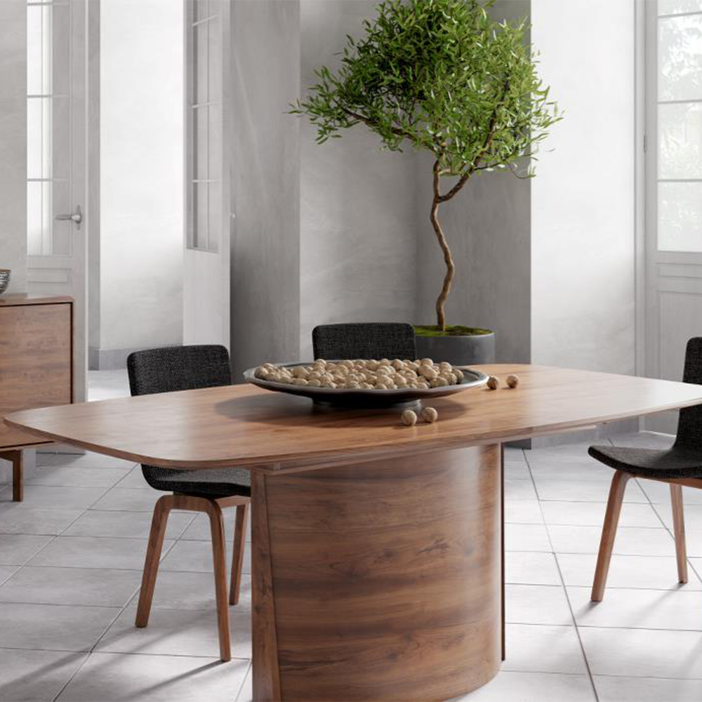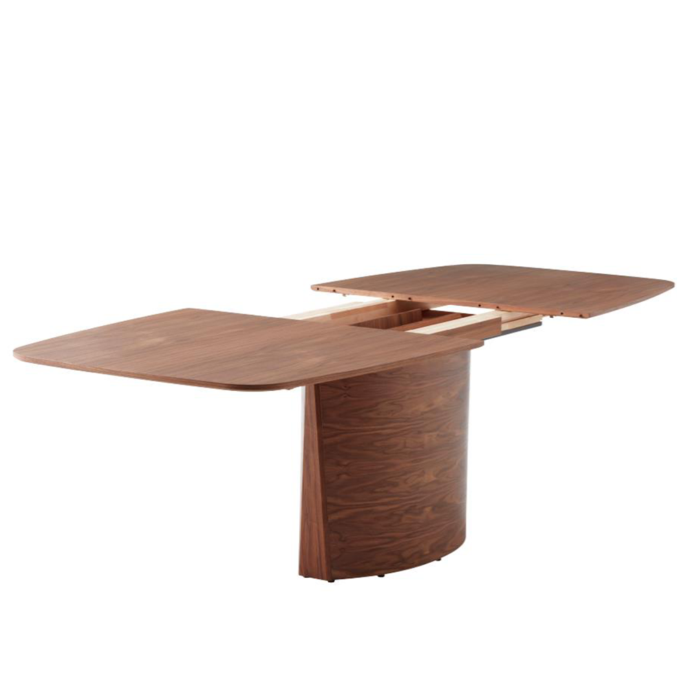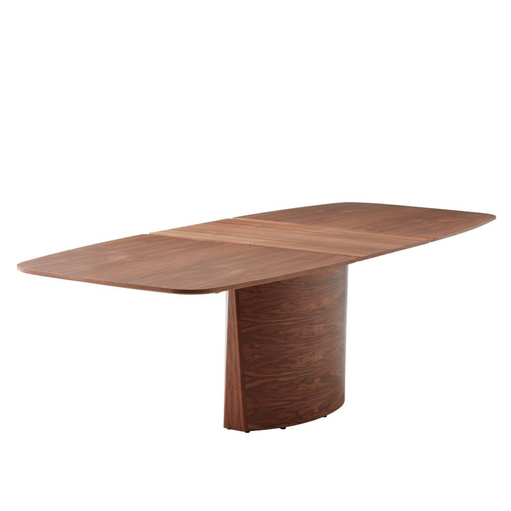Eettafel #117 van het merk Skovby is elegante eettafel die je kunt uitschuiven. Zo is deze eettafel geschikt voor zes tot tien personen. Het blad van deze elegante eettafel steunt op een centraal voetstuk waarin ook het extra tussenblad zit opgeborgen. Het tussenblad kun je eenvoudig omhoog halen en uitvouwen. Eettafel #117 heeft afgeronde hoeken en een voetstuk met een zachte geometrische vorm met scherpe, wigvormige eindstukken.