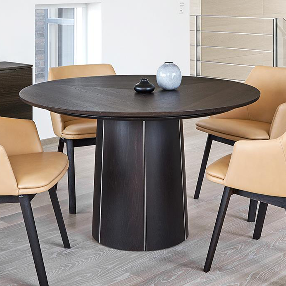 Eettafel #33 van het merk Skovby is elegante eettafel met een uniek verlengsysteem. De tafel beschikt over een draaiplateau die je kunt draaien. Zo bewegen de drie bladen in het midden van de tafel synchroon naar een positie die ruimte maakt voor de verlengbladen in het onderstel. Op deze manier heeft deze efficiënte eettafel #33 ruimte voor zowel zes als negen personen.