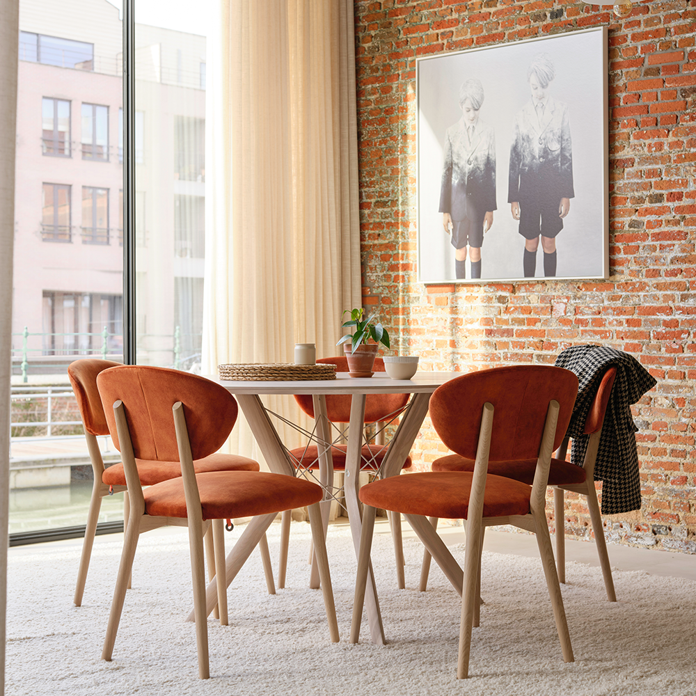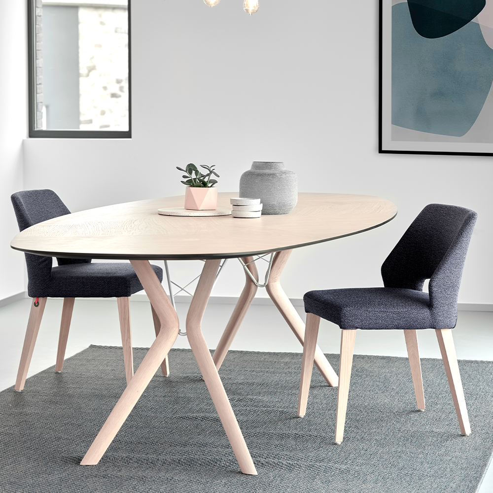 Eettafel Eclipse heeft zelfverzekerde bogen en afgeronde lijnen. De eettafel van Mobitec bevat een onderstel van hout en metaal in ongestructureerde lijnen. Hierdoor is Eclipse de perfecte match voor de Cosy – eetstoelen. Verder onthult de Mobitec eettafel een verlangen naar extreme lichtheid.