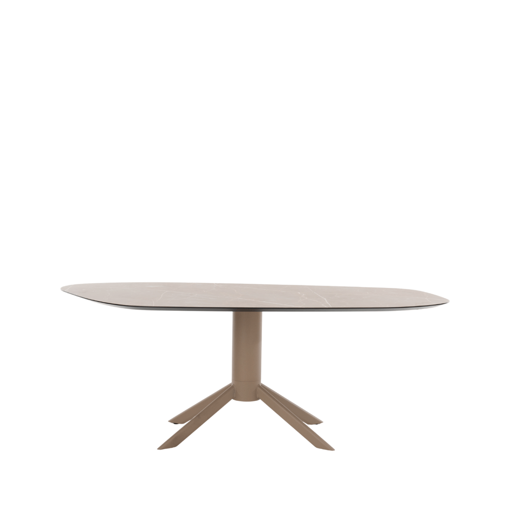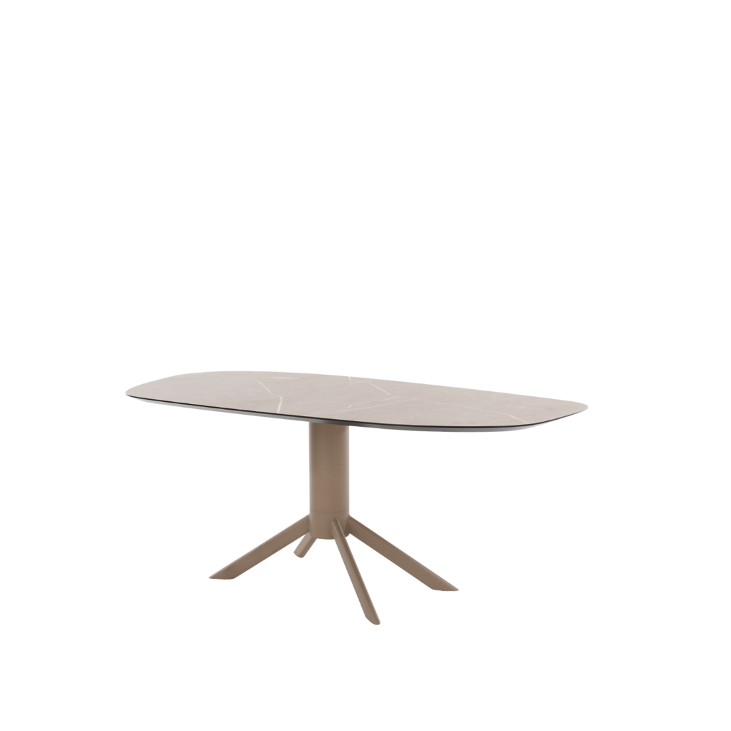 Eettafel Maro van Bert Plantagie valt op door zijn zachte organische vormen, praktische HPL-blad en elegante kolompoot. Verkrijgbaar in een speelse steenvorm of stijlvolle bootsvorm biedt deze tafel een luchtige uitstraling met een solide basis. Het verjongde blad in HPL Marmor Lugano of Oriental Stone brown zorgt voor een luxueuze, onderhoudsvriendelijke afwerking die perfect aansluit bij hedendaagse woonwensen.