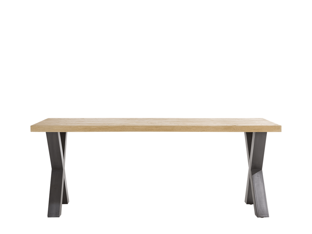 Bij de moderne eettafel Metalox van Henders en Hazel worden hout en metaal met elkaar gecombineerd. Dit geeft deze tafels een stoere eigentijdse look. Voor het houten tafelblad kun je kiezen uit een strak afgewerkt tafelblad, of een blad met boomschorsvorm. Voor de poten kan er gekozen worden uit een metalen X-poot, een metalen V-poot of een V-poot met en combi van metaal en hout. De eetkamertafels zijn verkrijgbaar in de maten 250 x 100, 230 x 100, 200 x 100 en 170 x 100.