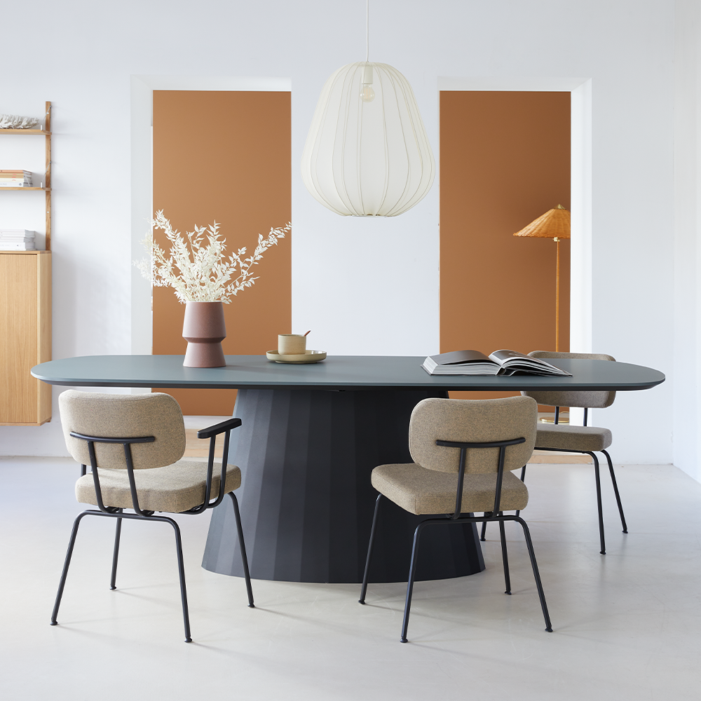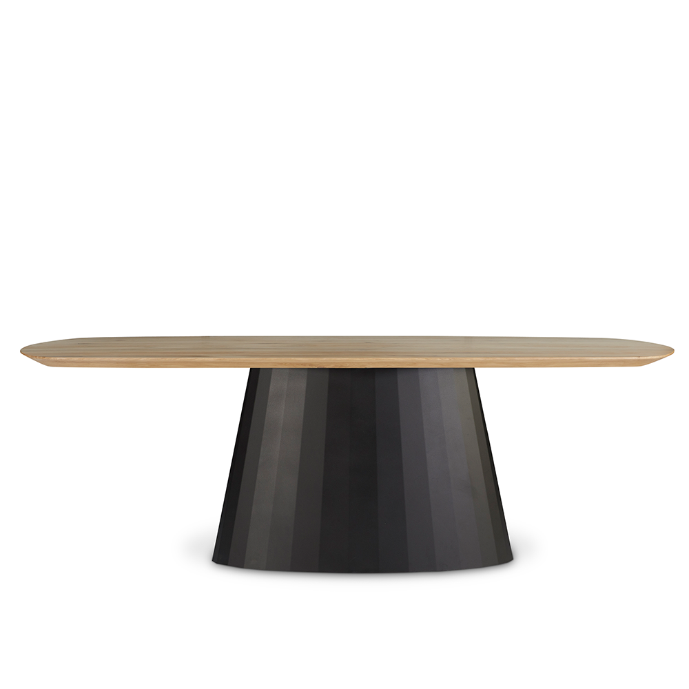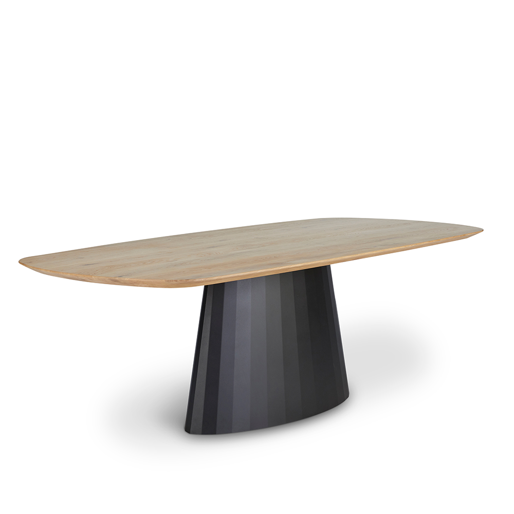 Eettafel Mura is er echt één uit duizenden. De kolompoot zorgt niet alleen voor houvast, het maakt deze tafel ook direct tot een eyecatcher. Een krachtige kolom als vaste voet, in combinatie met een natuurlijk blad is absoluut een goed duo. Daarnaast zijn de aflopende randen van het eikenhouten blad een soepele toevoeging en geven de tafel bovendien een rustiger voorkomen.
