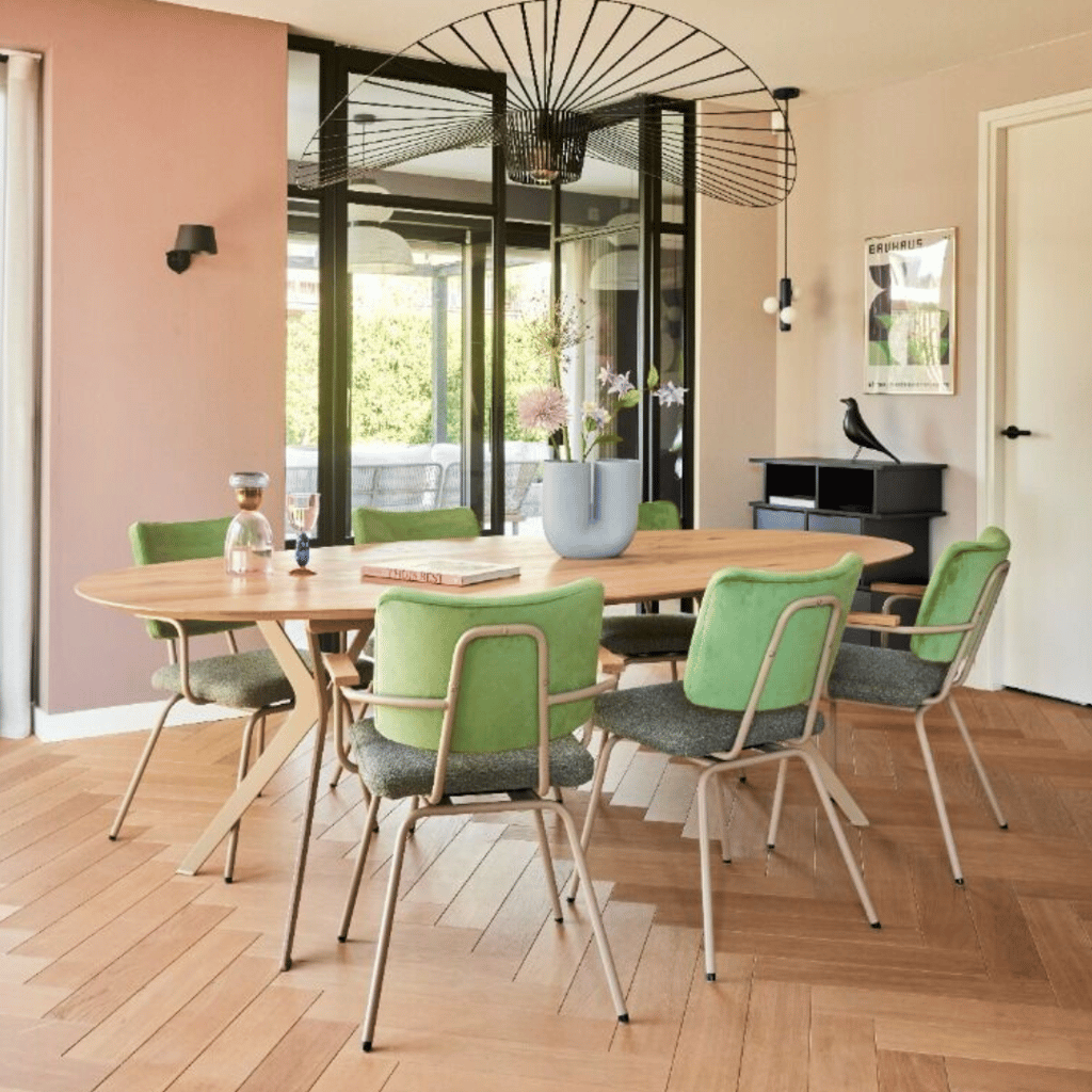 NOGA Design biedt diverse uitvoeringen, kleuren en afmetingen aan, zodat je de eettafel volledig naar jouw wensen kunt aanpassen. Eettafel Sama heeft standaard een ovaal blad, maar als je de voorkeur geeft aan een bootvormig blad, is eettafel Sem een uitstekend alternatief. Beide opties bieden een unieke uitstraling, afhankelijk van de sfeer die je in jouw eetkamer wilt creëren.