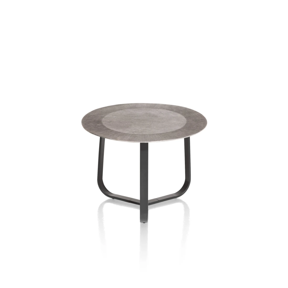 Het blad van salontafel Falun 60 cm is uitgevoerd in aluminium. Dit materiaal geeft een lichte glans en vangt het daglicht op een subtiele manier. Het is sterk, vormvast en eenvoudig schoon te houden met een zachte, licht vochtige doek. Het zwarte metalen onderstel is slank, maar stevig, en zorgt voor een moderne, bijna zwevende uitstraling onder het blad. Dat maakt Falun niet alleen mooi, maar ook praktisch in het dagelijks gebruik.