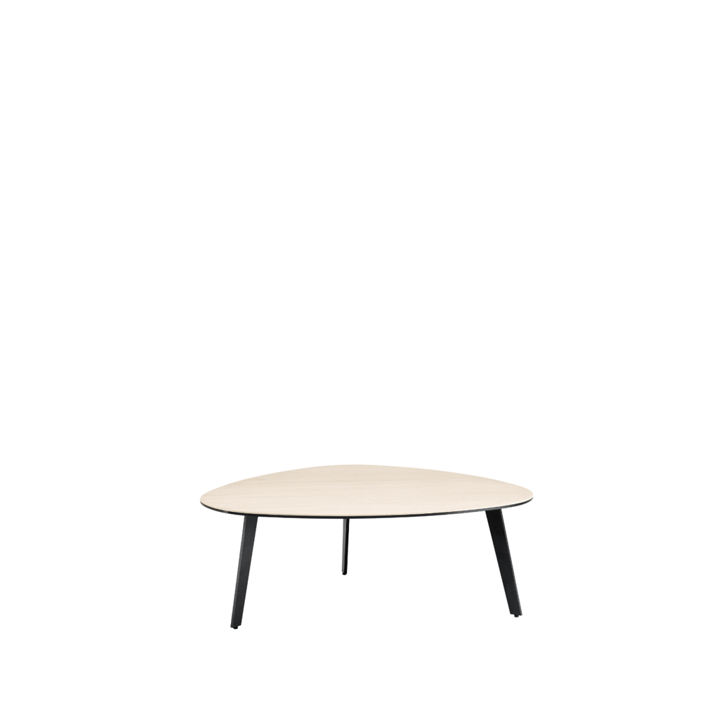 Salontafel Gajiru Hout met houten blad en slank zwart metalen onderstel, strak en natuurlijk design van Baenks.