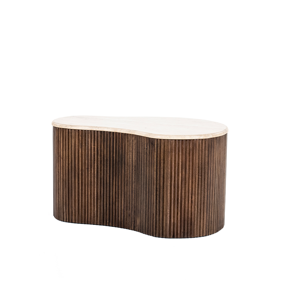 | Materiaal | Mangohout en travertin |