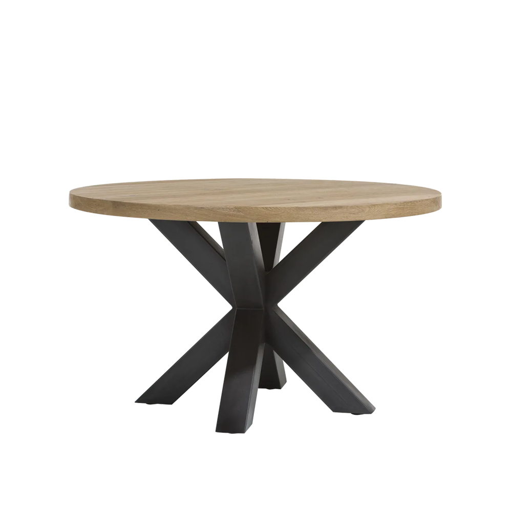 Tafel Metalox is een moderne en stoere ronde eetkamertafel uit de collectie van Henders & Hazel. Deze eettafel combineert warm hout met een stoere metalen tafelpoot. Daarnaast heeft de eetkamertafel een strakke vormgeving van de poot, hierdoor krijgt hij een mooie designuitstraling. Een aanrader voor liefhebbers van eigentijdse en stoere meubels. Tenslotte is er niet alleen keus uit een ronde eettafel maar ook uit een rechte- of een bartafel, het is mar net wat in jouw interieur past!