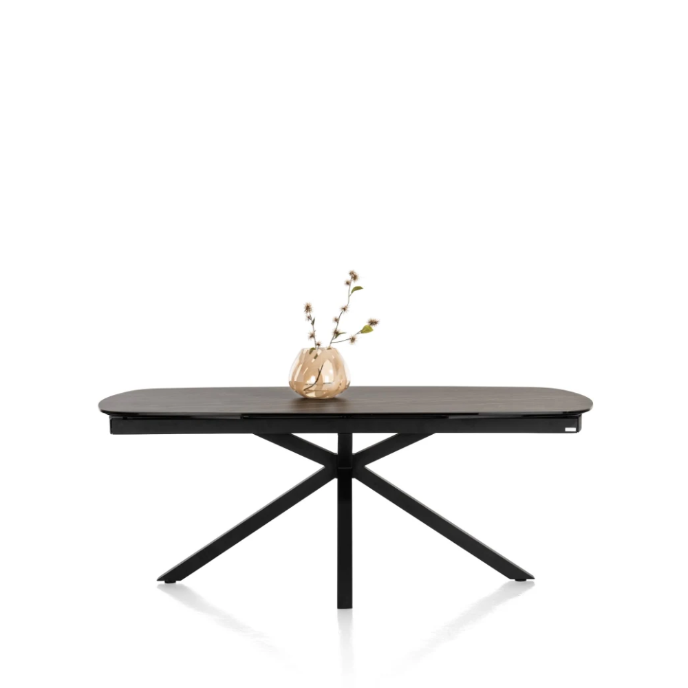 De zwarte metalen poot zorgt voor een stabiele basis en geeft de tafel een moderne, grafische touch. Met afmetingen van ca. B 100 x D 200 tot 300 x H 77 cm heb je een royale eettafel die toch elegant oogt.