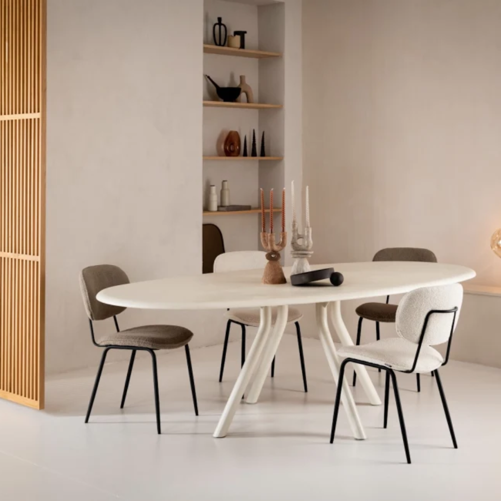 Ben je benieuwd hoe eetkamerstoel Lexi taupe aan jouw eettafel staat? In onze woonwinkel kun je de stoel zelf uitproberen, de bouclé stof voelen en de verschillende kleuren naast elkaar bekijken. Onze adviseurs denken graag met je mee over de ideale combinatie met jouw tafel, verlichting en overige zitmeubelen, zodat je eethoek een kloppend geheel wordt.