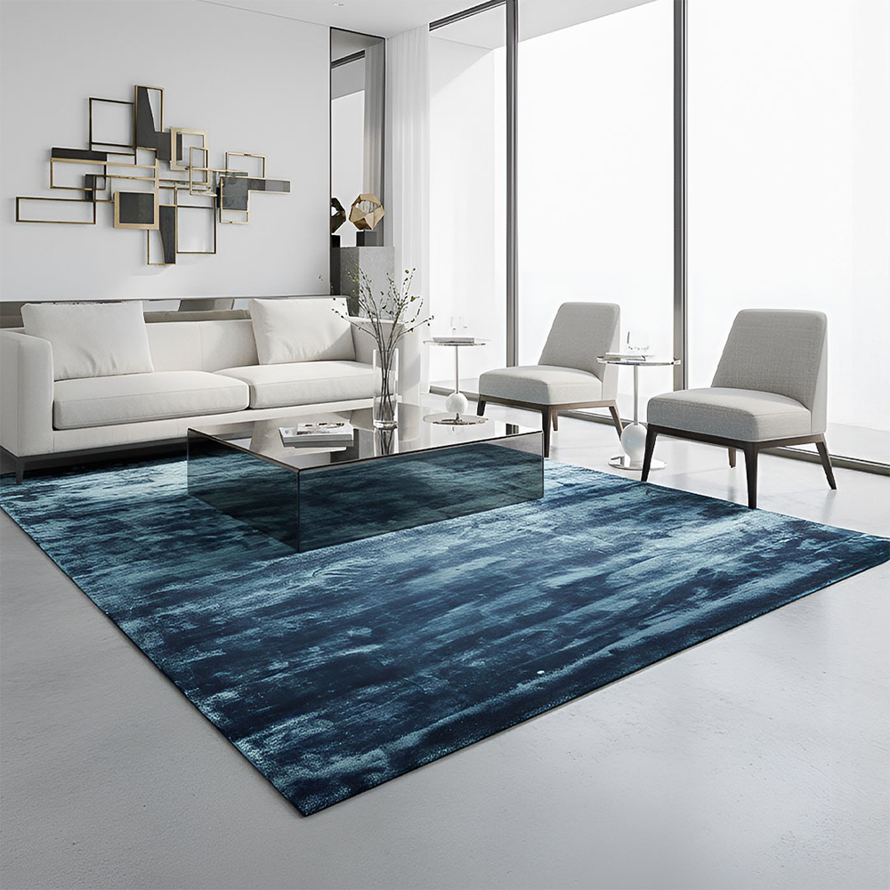 De Flavia collectie staat bekend om zijn fluweelachtige uitstraling. Door het gebruik van viscose krijgt het vloerkleed een lichte glans die verandert met de lichtinval. Dit zorgt voor een levendig effect en geeft het kleed een luxe karakter. Het blauwe oppervlak oogt nooit vlak, maar juist dynamisch en elegant, waardoor het moeiteloos combineert met verschillende materialen zoals hout, metaal en stof.