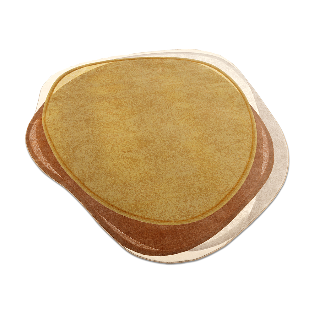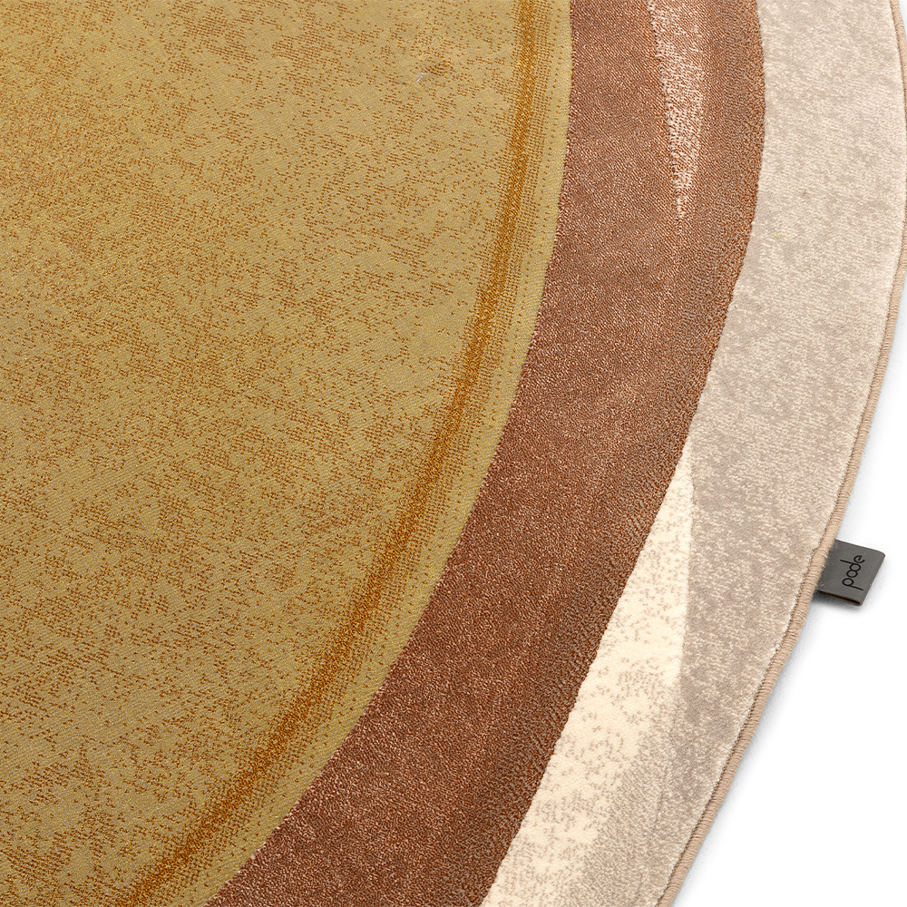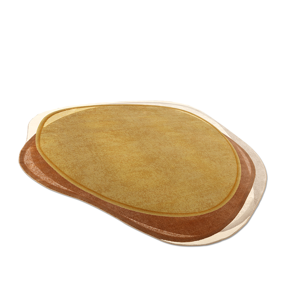 Vloerkleed Shallow Desert is een royaal eilandkleed en past helemaal in de trend van ronde, organische vormen in het interieur. Door gelaagdheid van verschillende kleurvlakken wordt diepte gecreëerd op dit unieke kleed. Alsof je van bovenaf in het heldere water van een vijver kijkt. Het vloerkleed Shallow Desert van Pode is een ontwerp van Claire Vos. Dit prachtige kleed met warme kleuren en organische vormen is een echte toevoeging aan jouw interieur.