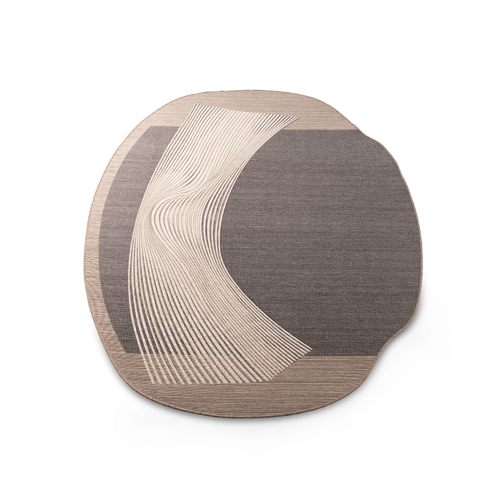 Vloerkleed Warp valt direct op! Is het een rimpel in de tijd? Het traject van een ruimtereis, of toch een verschuiving van het perspectief? Het antwoord is simpel: je mag erin zien wat je erin wilt zien. Maar dat het vloerkleed Warp weer een intrigerend ontwerp van Claire Vos is, staat buiten kijf.