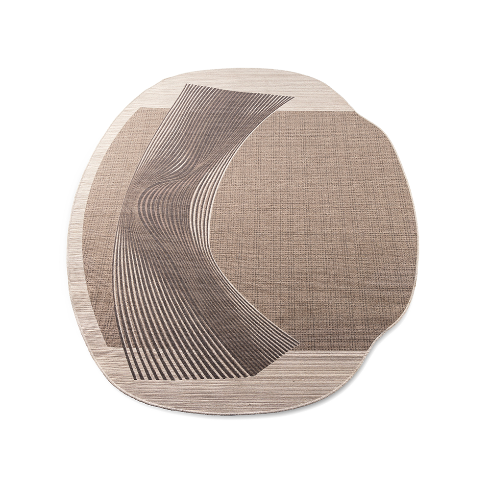 Vloerkleed Warp valt direct op! Is het een rimpel in de tijd? Het traject van een ruimtereis, of toch een verschuiving van het perspectief? Het antwoord is simpel: je mag erin zien wat je erin wilt zien. Maar dat het vloerkleed Warp weer een intrigerend ontwerp van Claire Vos is, staat buiten kijf.