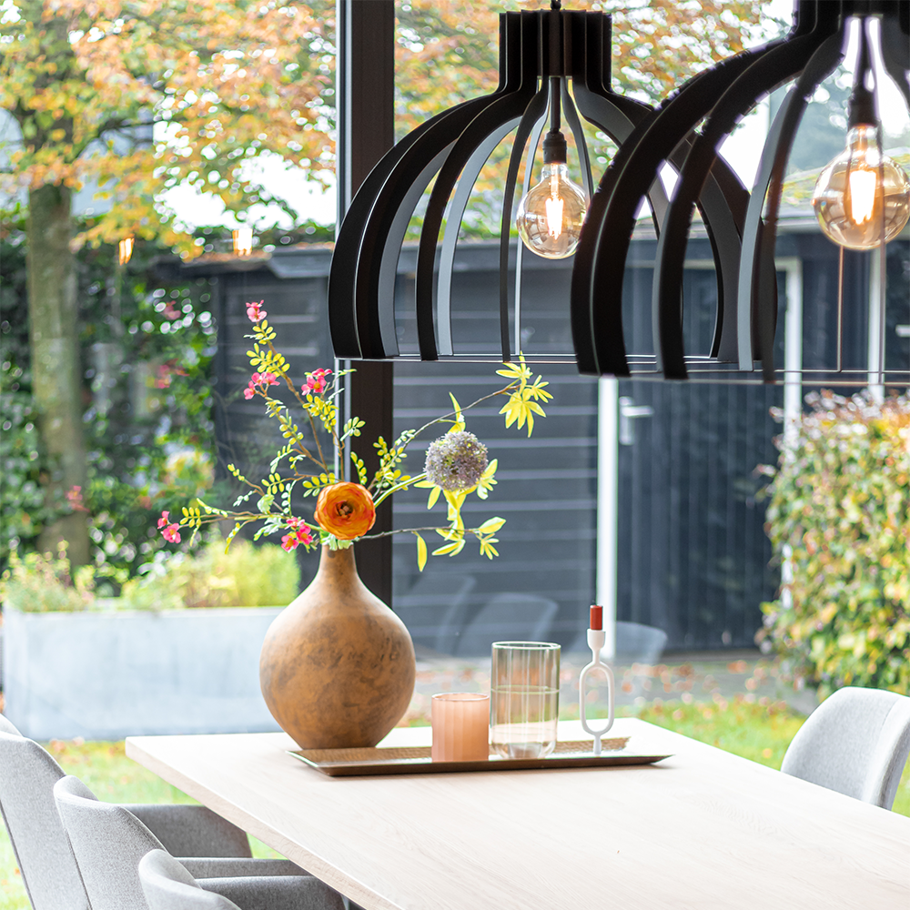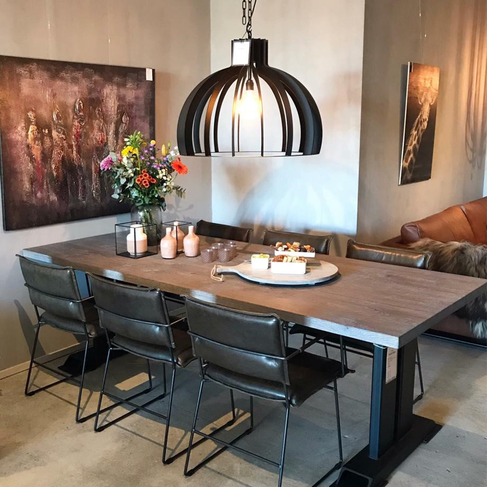 Deze prachtige hanglamp komt uit de collectie van Dijkos. Dijkos is een producent van unieke stalen meubels, tafels en lampen. Elke meubel wordt bij hun op maatwerk gemaakt. Doordat zij zowel het ontwerp als de productie in eigen beheer hebben, kunnen zij letterlijk alles maken van staal.