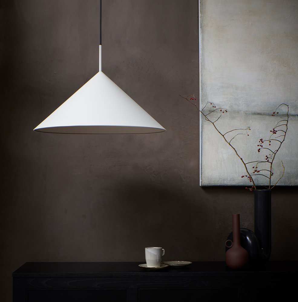 Hanglamp Driehoek Mat is een prachtige metalen lamp met een doorsnede van 60 cm. De kleuren van de binnen- en buitenzijde van de lampenkap zijn dezelfde kleuren. Deze lamp is mooi voor boven de eettafel en in de kamer. Bovendien is hanglamp driehoek mat verkrijgbaar in drie verschillende kleuren. Met deze lamp breng je meer sfeer in huis en past daarom perfect in elke woonstijl.