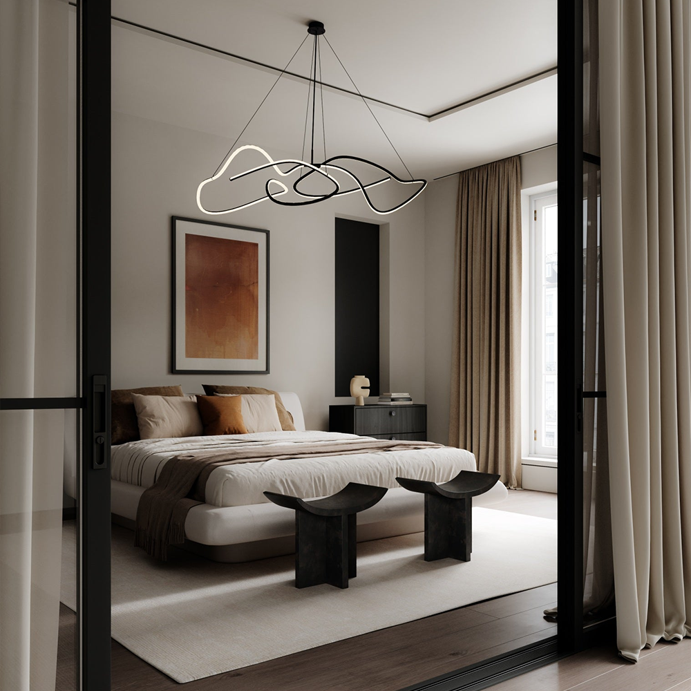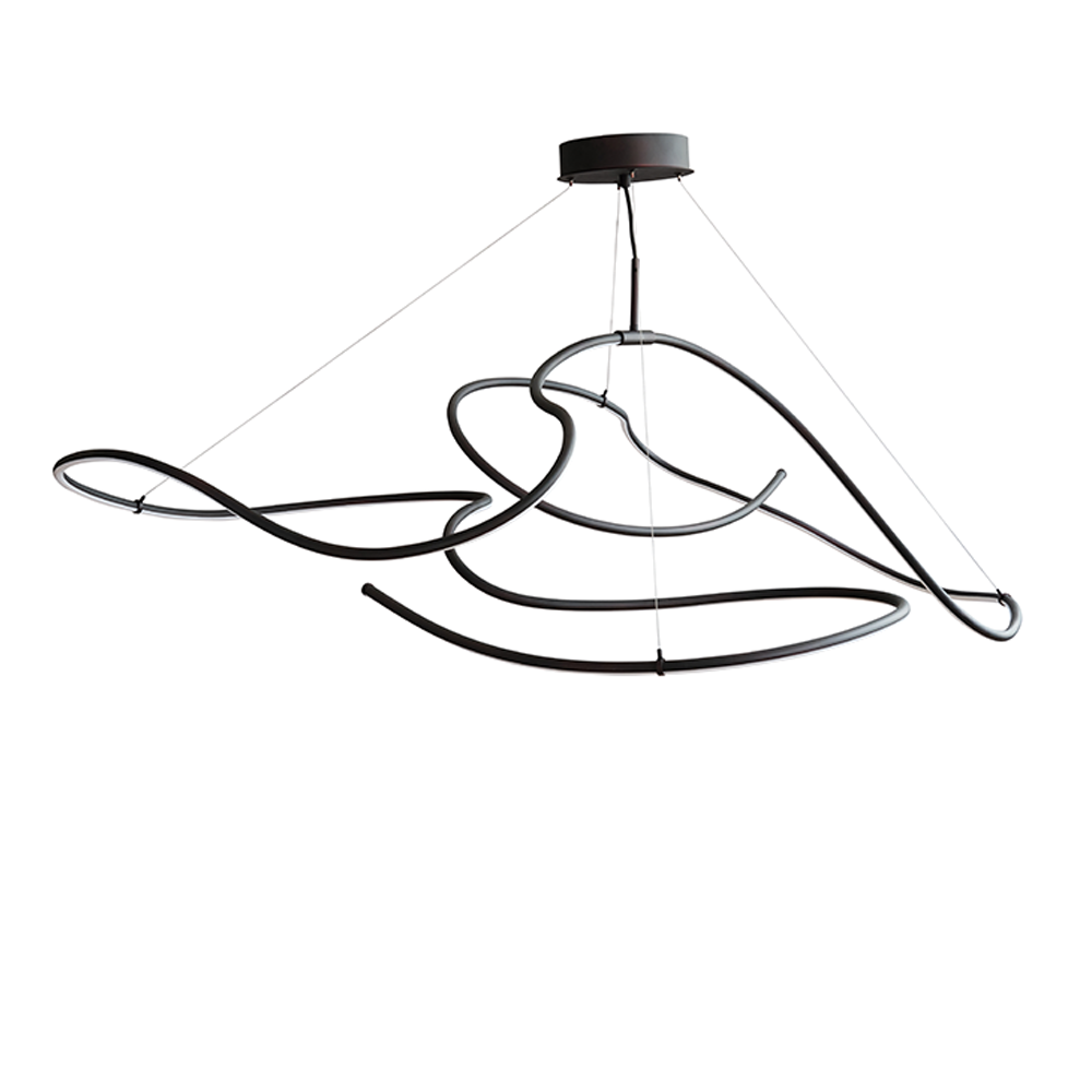 Met zijn ontwerp brengt de Ghost Big Chandelier een artistieke en moderne sfeer in elk interieur. De in de buizen geïntegreerde duurzame LED-verlichting biedt tot 25.000 uur aan subtiel warm licht (2400 Kelvin). Het licht volgt de curves van de buizen, waardoor het op sommige plekken helderder schijnt en een speels spel van licht en schaduw creëert. De lamp hangt aan vier verstelbare roestvrijstalen kabels, waardoor hij eenvoudig op de gewenste hoogte kan worden afgesteld, ongeacht de ruimte. Verkrijgbaar in Neon, Burned Black en Chrome, biedt de lamp veelzijdigheid in stijl, geschikt voor zowel moderne als industriële interieurs.