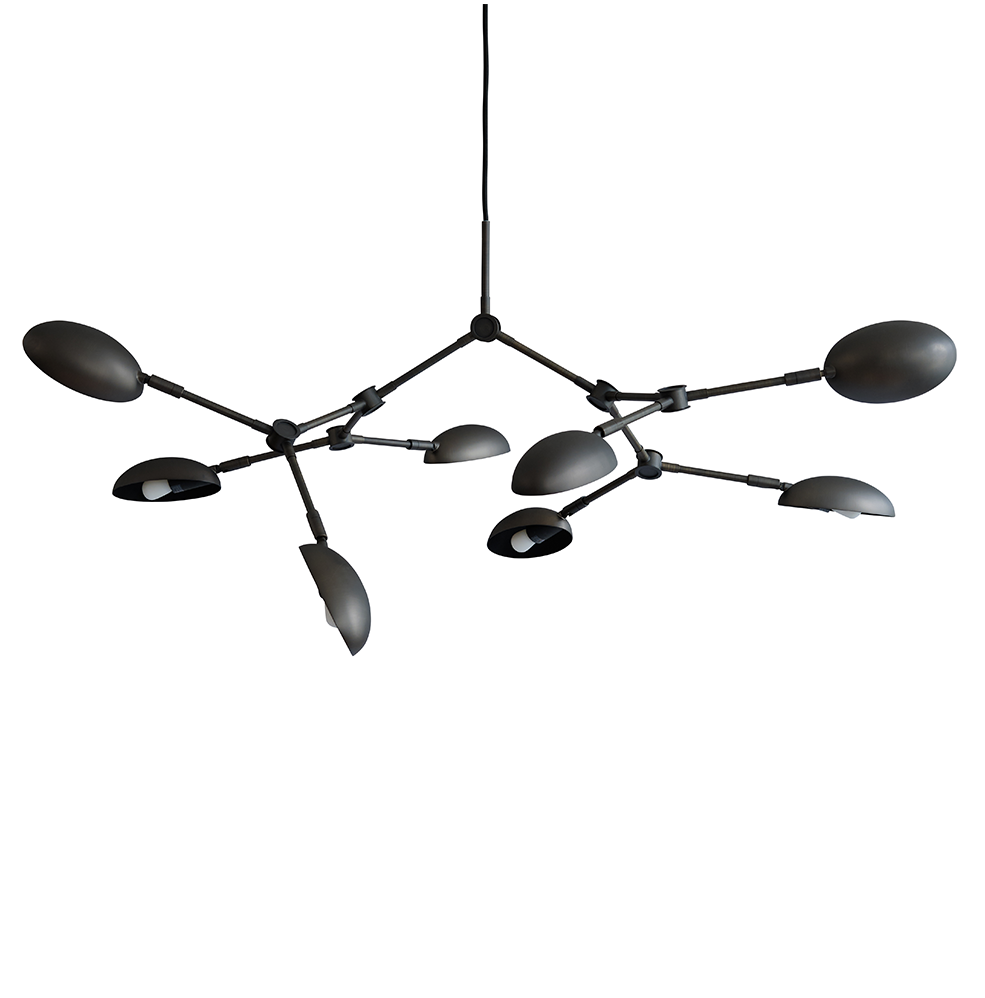 Hanglamp Oxidized oftewel de Drop Chandelier uit de nieuwe collectie van 101 Copenhagen is niet zo maar een lamp. Je voelt bijna de beweging van de Drop Chandelier. Als vrij vloeiende sculptuur neemt het de ruimte in zich op en dringt het aan op een eigen leven. Terwijl the Drop Chandelier-collectie modernistische lampontwerpen van de jaren 1950 eert, viert het ook een experimentele, innovatieve aanpak met zijn zacht gebogen tinten en 14 flexibele en functionele verstelbare armen – waardoor talloze opties, variaties en hoeken worden gecreëerd.