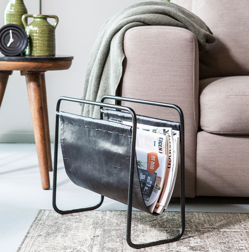 Magazinehouder Toner heeft naast een stoere look, ook nog eens een handige functie. Deze handige houder biedt namelijk opbergmogelijkheid voor al je magazines en boeken. De houder is gemaakt van materialen als leer en ijzer. Heerlijk als je op de bank zit met een kop thee en even tijd hebt voor jezelf. Houd je meer van de aardse tinten? Bekijk dan de Toner in het bruin.