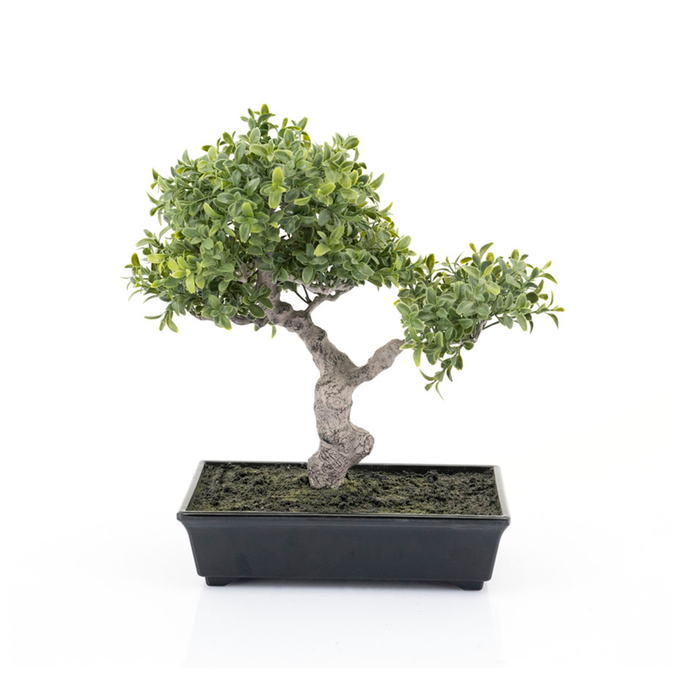 Plant Bonsai Tree fleurt direct je huiskamer op. Deze plant vangt de essentie van weelderig groen en heeft realistisch gebladerte zonder het dagelijkse onderhoud. Creëer een ontspannen sfeer, terwijl je een botanisch gevoel toevoegt met levendig en authentiek groen! Elke plant wordt ook gezet in een neutrale zwarte pot voor eenvoudig stylen. Vind je balans met de Bonsai Tree.