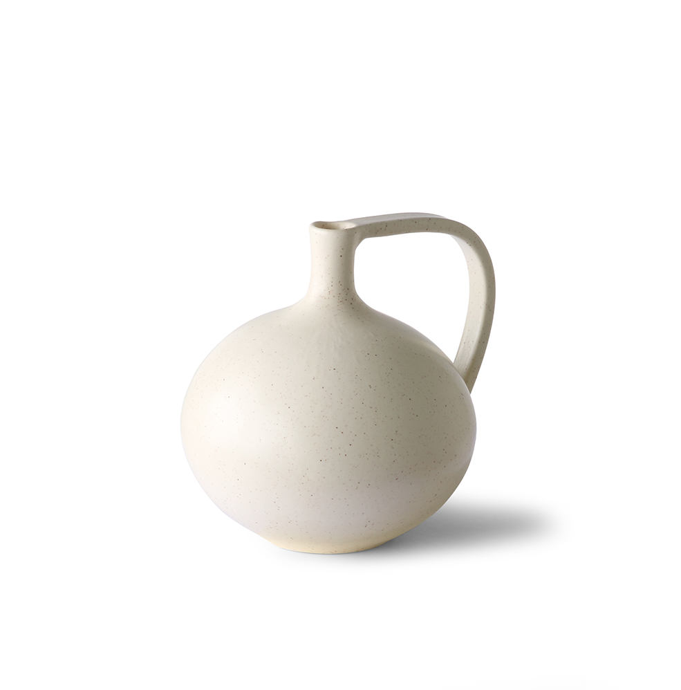 Pot Keramiek heeft een wit gespikkelde afwerking. Dit maakt de pot een mooie eyecatcher op jouw eettafel. Je kunt deze keramische pot daarnaast mooi combineren met de 70’s servies van HKliving. Een uniek design met een zachte look. Laat jouw kamer schitteren!