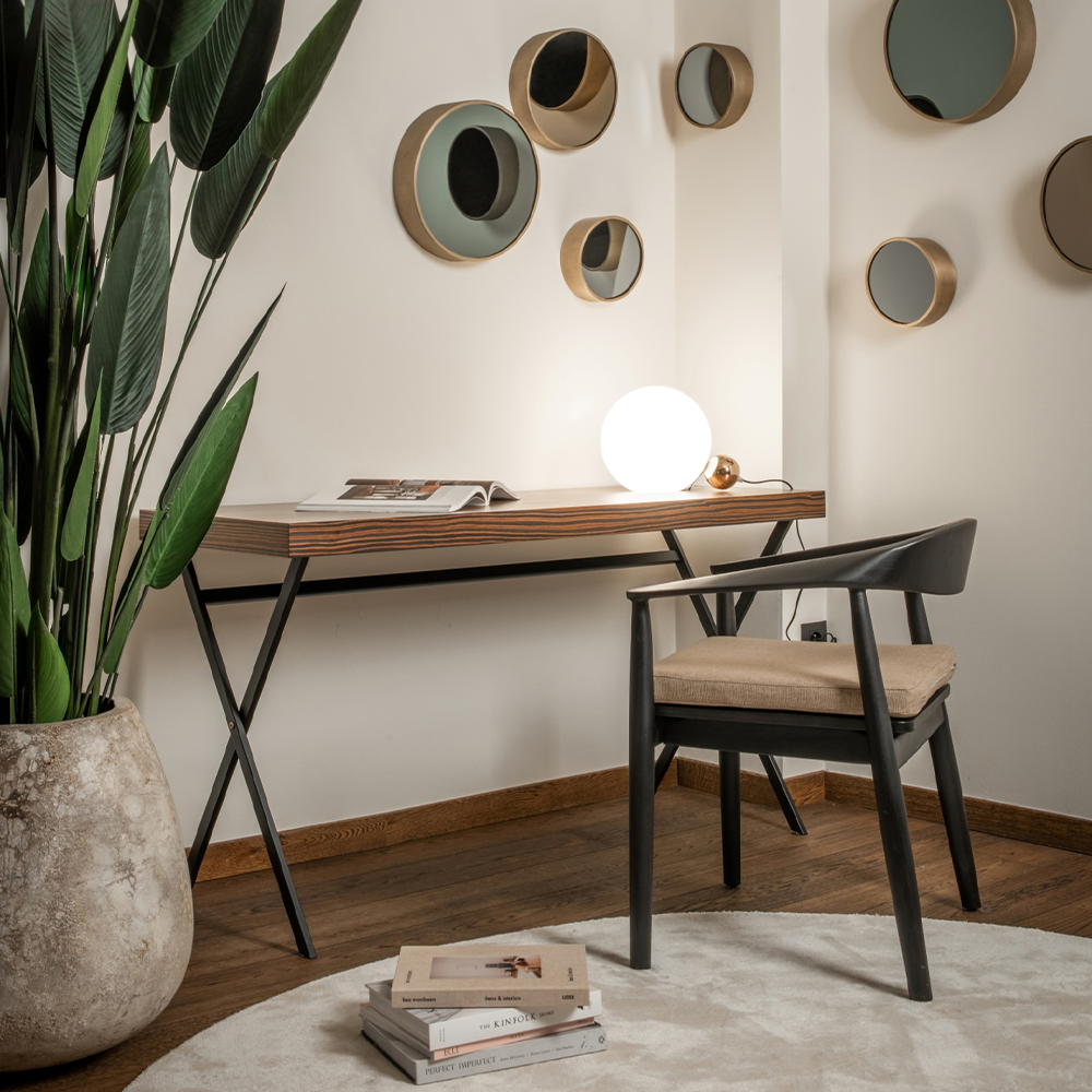 Laat je betoveren door de tafellamp “Porro” van Dôme Deco. Deze lamp is niet alleen een bron van licht, maar daarnaast ook een prachtig decoratief element dat verfijning en elegantie toevoegt aan je interieur. Porro is een tafellamp gemaakt van gepoedercoat metaal en matglas, met gebruik van 1xE27 LED-lamp.