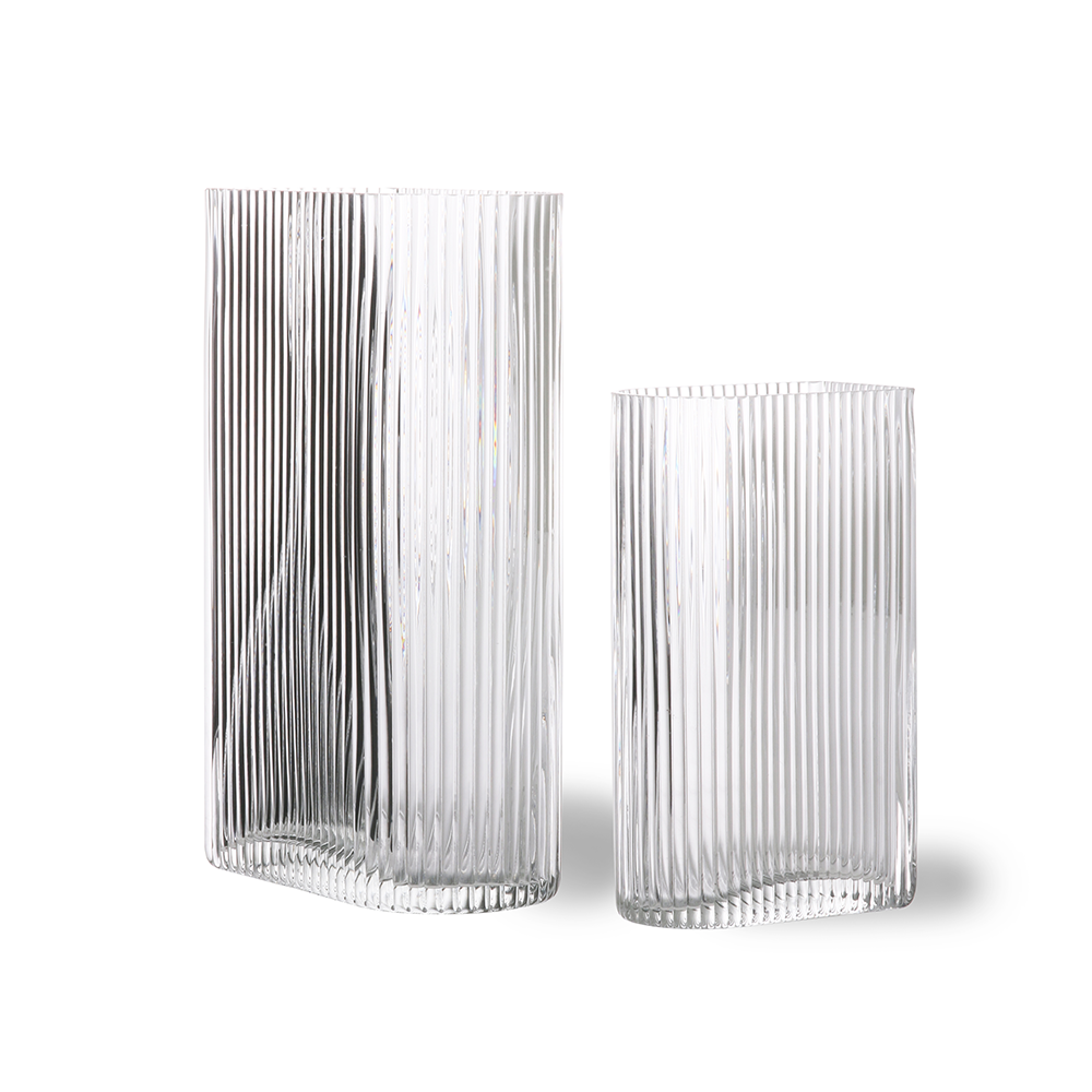 Vazen Geribbeld Helder van glas van het merk HKLiving set van twee