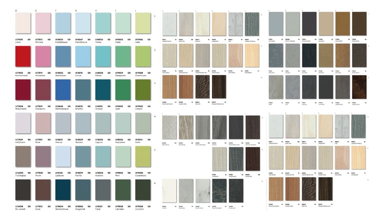 Een kleine greep van de HPL stalen die Sumisura in de collectie heeft